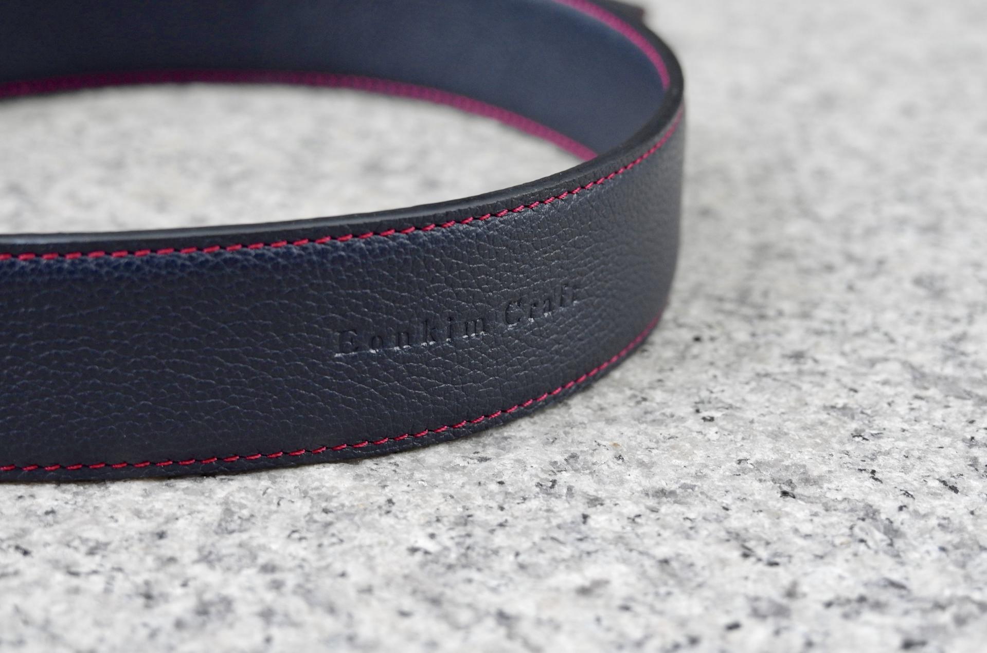 네이비 컬러 가죽에 레드 컬러 스티치 로 제작된 스트랩입니다.