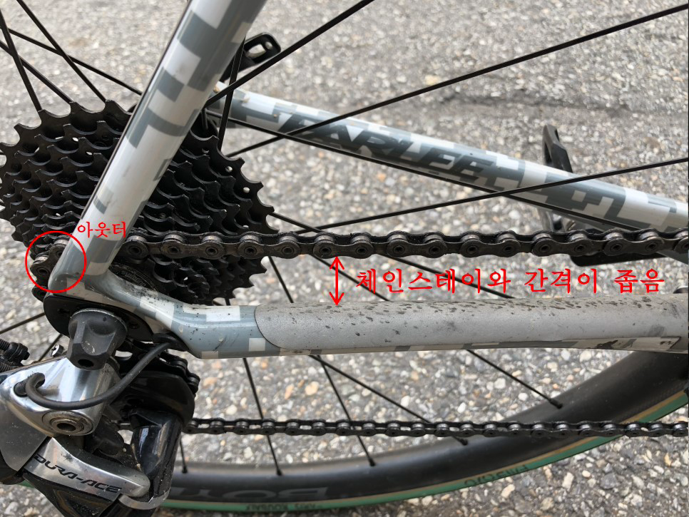아래 사진처럼 체인이 쉽게 체인스테이에 닿게 됩니다.
